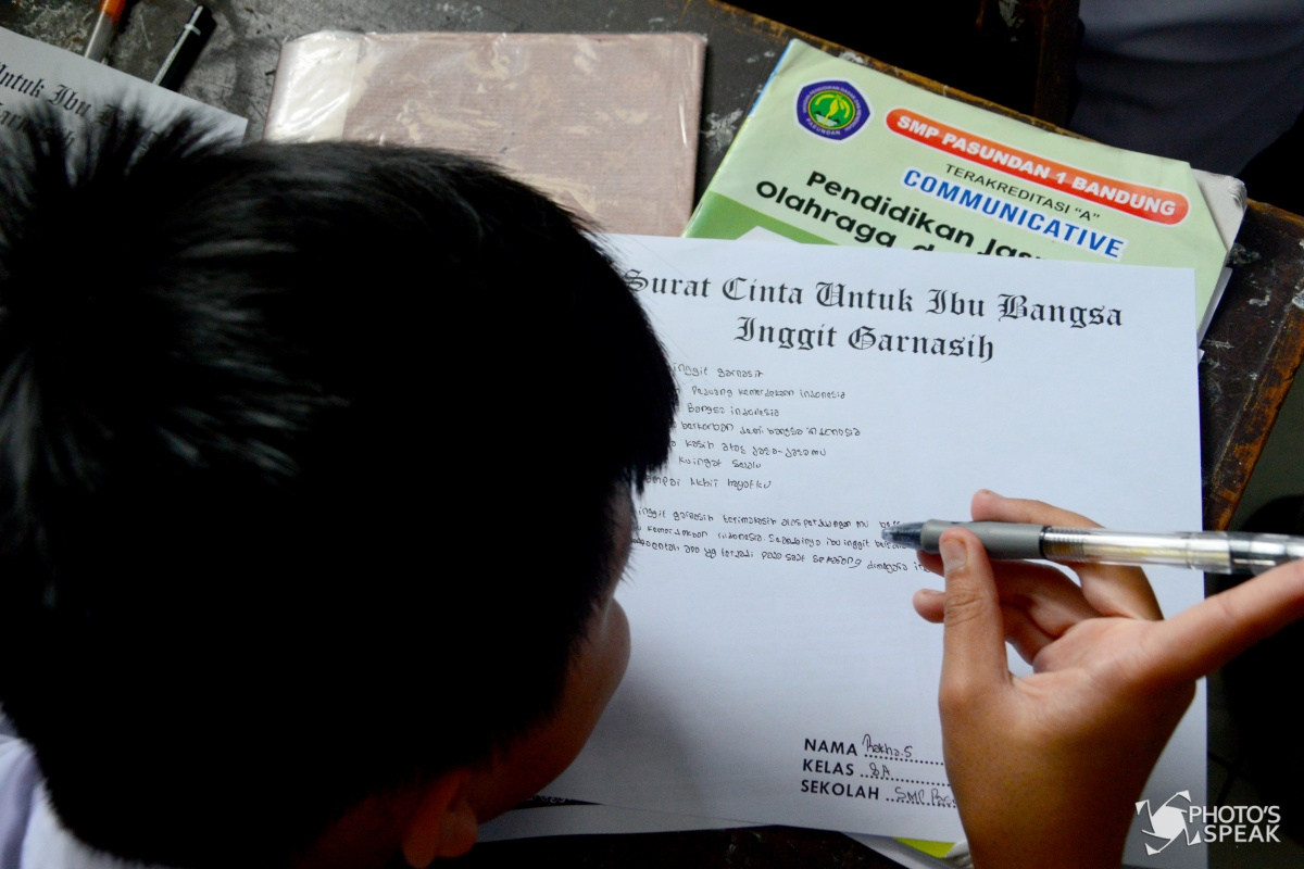 Rangkaian ini dilanjutkan kegiatan dengan menulis surat cinta oleh siswa SMP 1 Pasundan Kota Bandung. Sebelum para siswa menuliskan surat cintanya bagi Inggit Garnasih dengan tema “Andaikan Ibu Inggit Garnasih Jadi Pahlawan Nasional”, Tito Zeni Asmara Hadi yang merupakan cucu dari ibu bangsa kita menjelaskan sejarah singkat wanita yang turut berjuang memerdekakan bangsa Indonesia tersebut. Para siswa pun menuliskan surat cinta mereka bagi sosok Ibu Bangsa kita yang tidak pernah dijadikan pahlawan nasional.