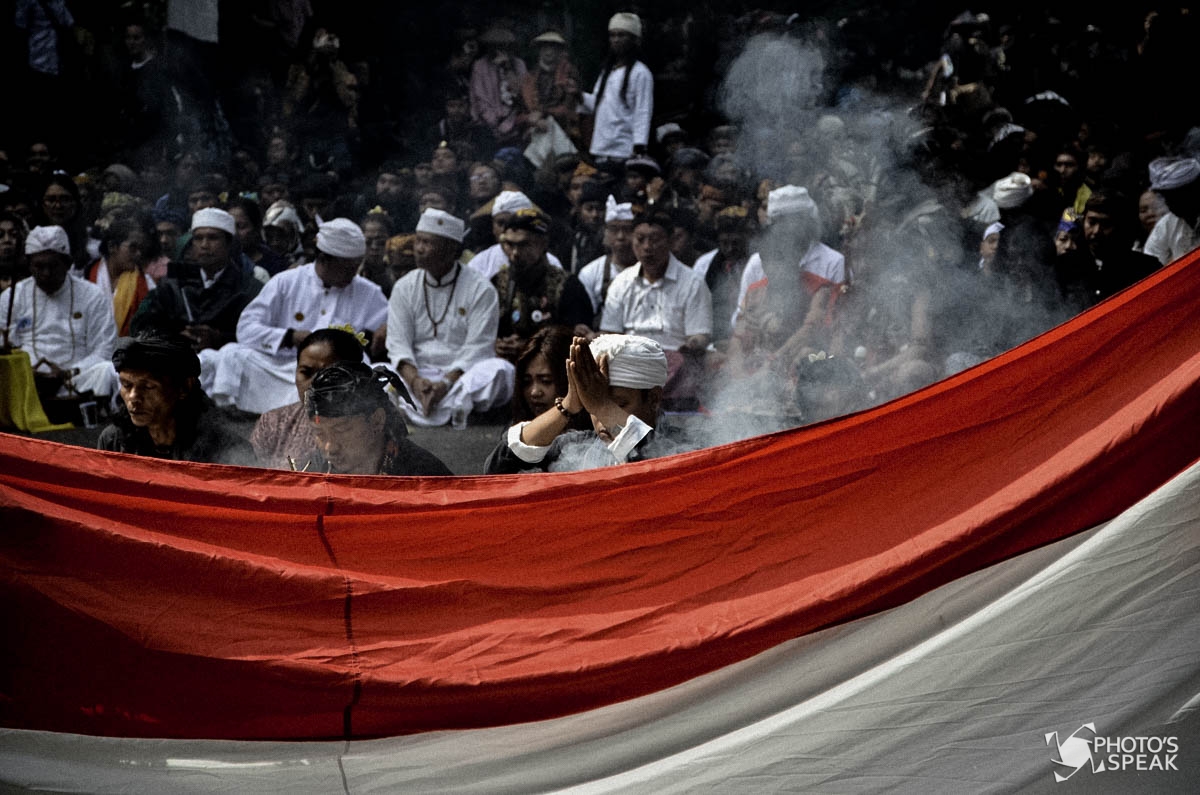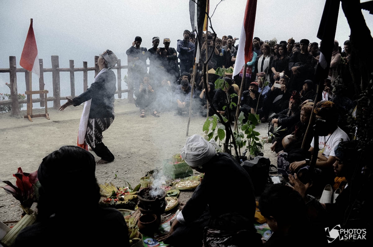 Lalu tibalah proses puncak dari acara ngertakeun bumi lamba ini, yaitu melemparkan sesajen yang telah mereka doakan ke kawah Tangkuban Parahu. Riuh bahagia dari para peserta upacara memenuhi Gunung Tangkuban Parahu ketika mereka melemparkan sesajen ke dalam kawah. Pelemparan sesajen ini sebagai simbol rasa syukur manusia atas nikmat alam yang telah mereka terima serta menjadi pengingat agar terus merawat bumi ini dari kerusakan yang kian masif. PHOTO’S SPEAK / Fakhri Fadlurrohman