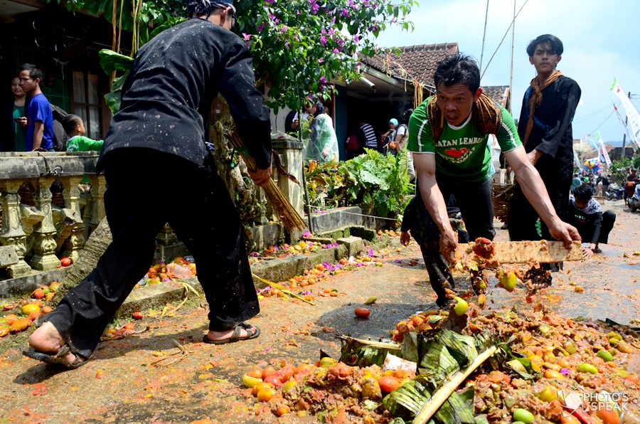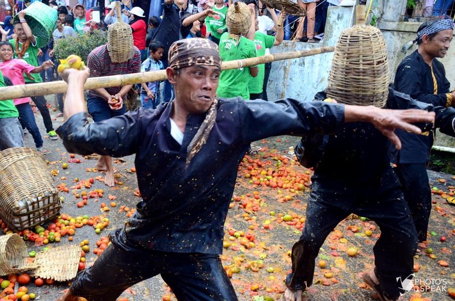 Perang tomat yang sering kita lihat di Spanyol inilah yang sangat ditunggu warga. Perang tomat ini menjadi ritual Hajat buruan yang diakhiri dengan Rempug Tarung Adu Tomat di Kampung Cikareumbi, Desa Cikidang, Kecamatan Lembang, Kabupaten Bandung Barat, Rabu, 19 Oktober 2016. “Hajat buruan merupakan tradisi dari leluhur kita yang harus kita jaga dan lestarikan” Ujar Abah Effendi, warga setempat.