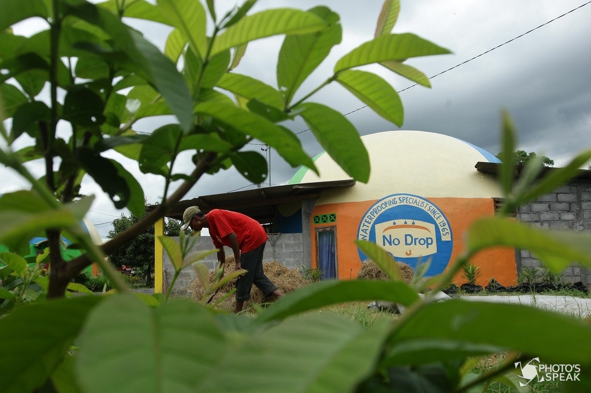 Konsep rumah ganti berupa kubah atau “dome” ini merupakan bantuan dari Domes For The World, sebuah lembaga nirlaba dari Amerika Serikat serta donatur perorangan dari Arab Saudi. Sebanyak 71 rumah dum berbentuk setengah lingkaran yang dirancang tahan terhadap guncangan. Memiliki diameter 7 meter dengan ketinggian puncak sekitar 4 meter, rumah dum ini dilengkapi dua daun jendela dan pintu serta terdiri atas dua lantai di dalam rumah dan empat ruangan. Pemukiman dengan luas 2 hektar ini merupakan satu-satunya komplek rumah dum yang ada di Indonesia bahkan di Asia.
