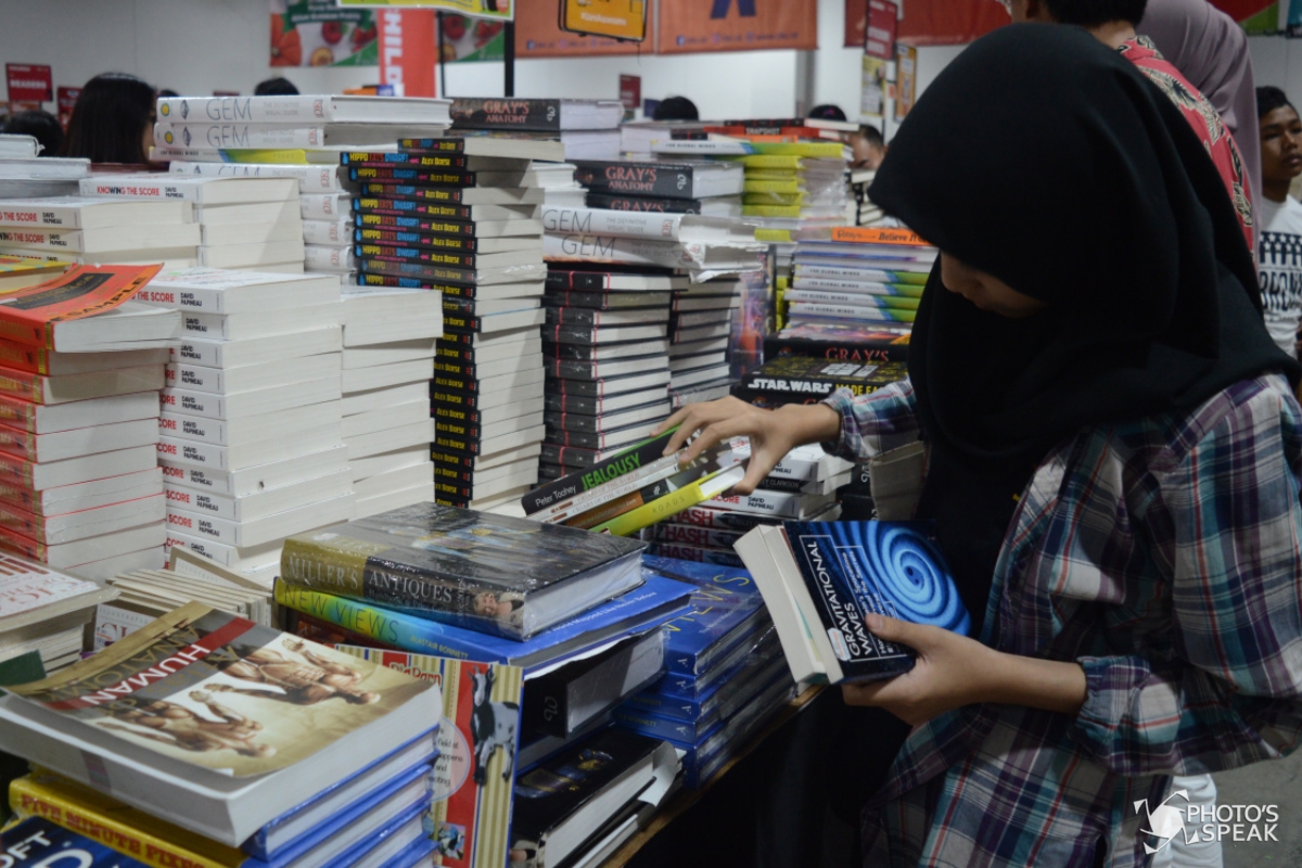 Pengunjung memadati lokasi bazar buku Big Bad Wolf 2019 di Hotel Mason Pine, Kota Baru Parahyangan, Kecamatan Padalarang, Kabupaten Bandung Barat, Selasa (2/7/2019). Bazar buku yang menyediakan lebih dari 2 juta buku berbagai jenis genre ini digelar hingga 8 Juli 2019 guna meningkatkan minat literasi bagi masyarakat. PHOTO' S SPEAK / Virliya Putricantika