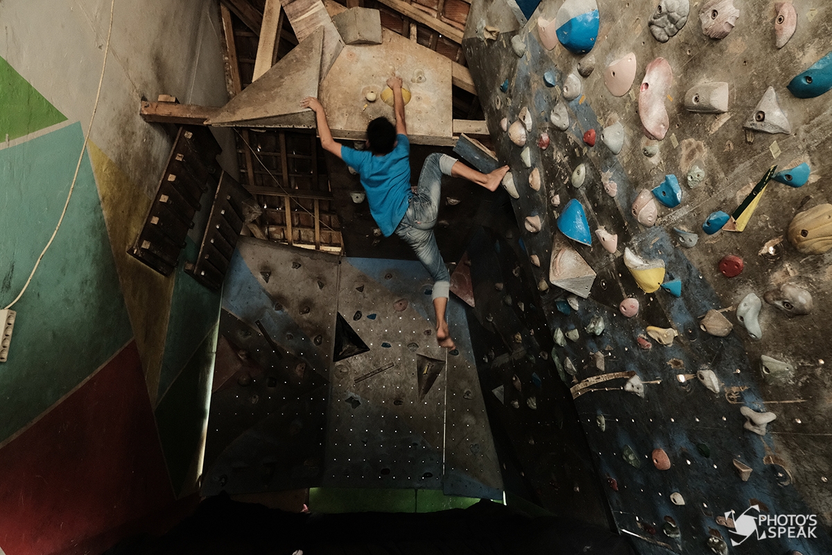Pemanjat berlatih panjat tebing jenis bouldering di Kampung Cidadap, Desa Padalarang, Kecamatan Padalarang, Kabupaten Bandung Barat (4/08/2020). Keberadaan Climbing Wall Training Center menjadi salah satu sarana rekreasi dan olahraga yang dibuat oleh Forum Pemuda Peduli Karst Citatah (FP2KC) untuk mencetak atlet panjat tebing yang mampu berprestasi di tingkat regional maupun nasional. PHOTO'SSPEAK/ Fakhri Fadlurrohman
