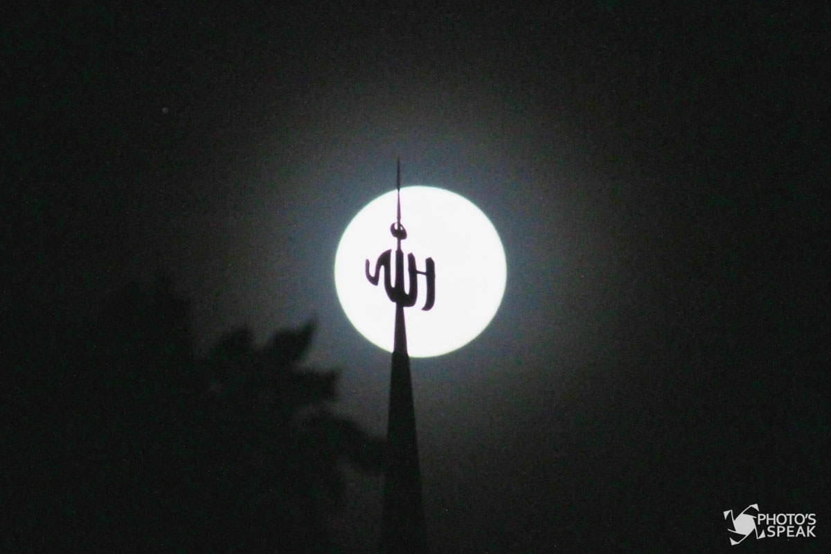 Fenomena supermoon di langit kawasan Cibiru, Kota Bandung, Minggu (3/12/2017). Fenomena supermoon adalah purnama yang bertepatan dengan bulan yang mencapai jarak terdekat dengan bumi. Jarak yang semula pada 384 ribu km menjadi 357 ribu km. Fenomena ini juga dapat mempengaruhi peningkatan gelombang pasang air laut akibat gaya tarik bulan yang menjadi lebih besar. PHOTO'S SPEAK / Fauzan