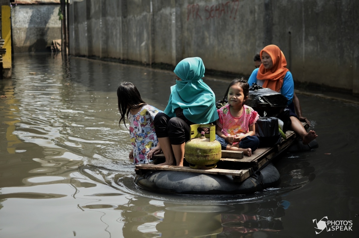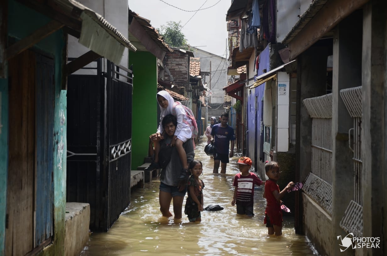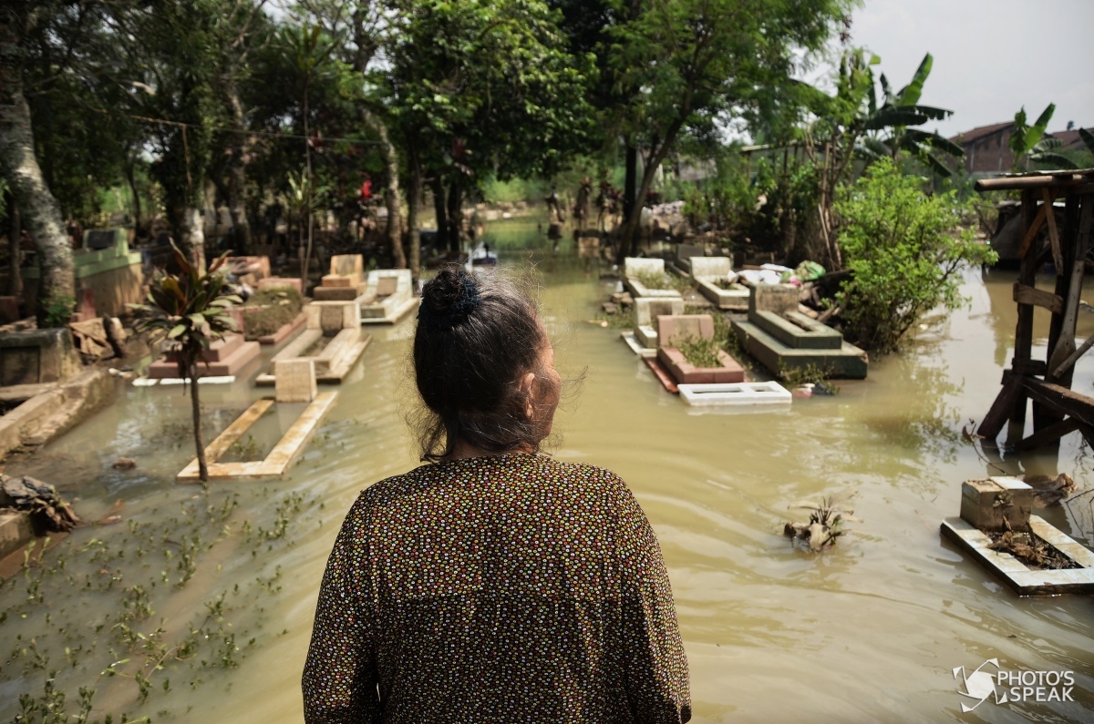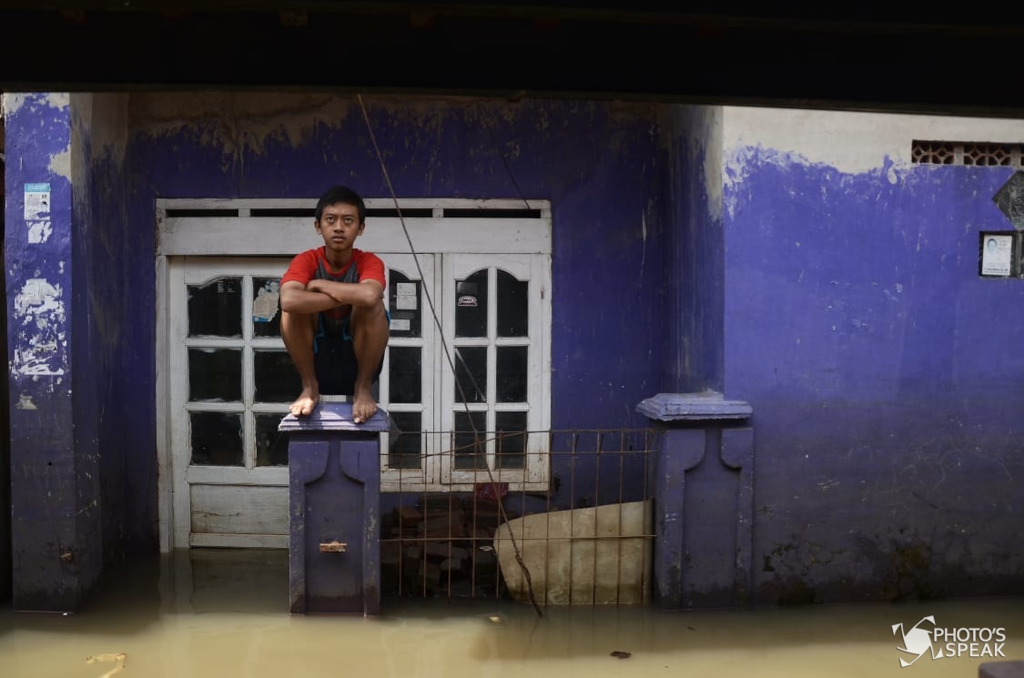 Warga bertahan di lokasi terdampak banjir di Kampung Babakan Cilisung, Bojong Asih, Kabupaten Bandung, Senin (17/2/2020). Banjir yang menggenangi pemakaman umum dan rumah warga sejak Sabtu (15 /2/2019) ini mulai surut kedalamannya sekitar 50 cm hingga 1,5 meter dengan jumlah 1.413 Kepala Keluarga yang terdampak. PHOTO'SSPEAK/ Syawal Febrian