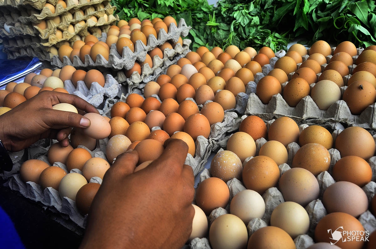 Pedagang merapikan telur ayam dagangannya di Pasar Sehat Siupi, Jalan Raya Barat, Kecamatan Cicalengka, Kabupaten Bandung, Minggu (17/12/2017). Menjelang Hari Natal dan Tahun Baru, harga keperluan rumah tangga salah satunya telur mulai berangsur naik. Tingginya harga di kalangan pemasok, memaksa pedagang ikut menaikkan harga telur dari Rp. 19.500 menjadi Rp. 25.000 per kilogram. PHOTO'S SPEAK / Naufal Azhar Syauqi