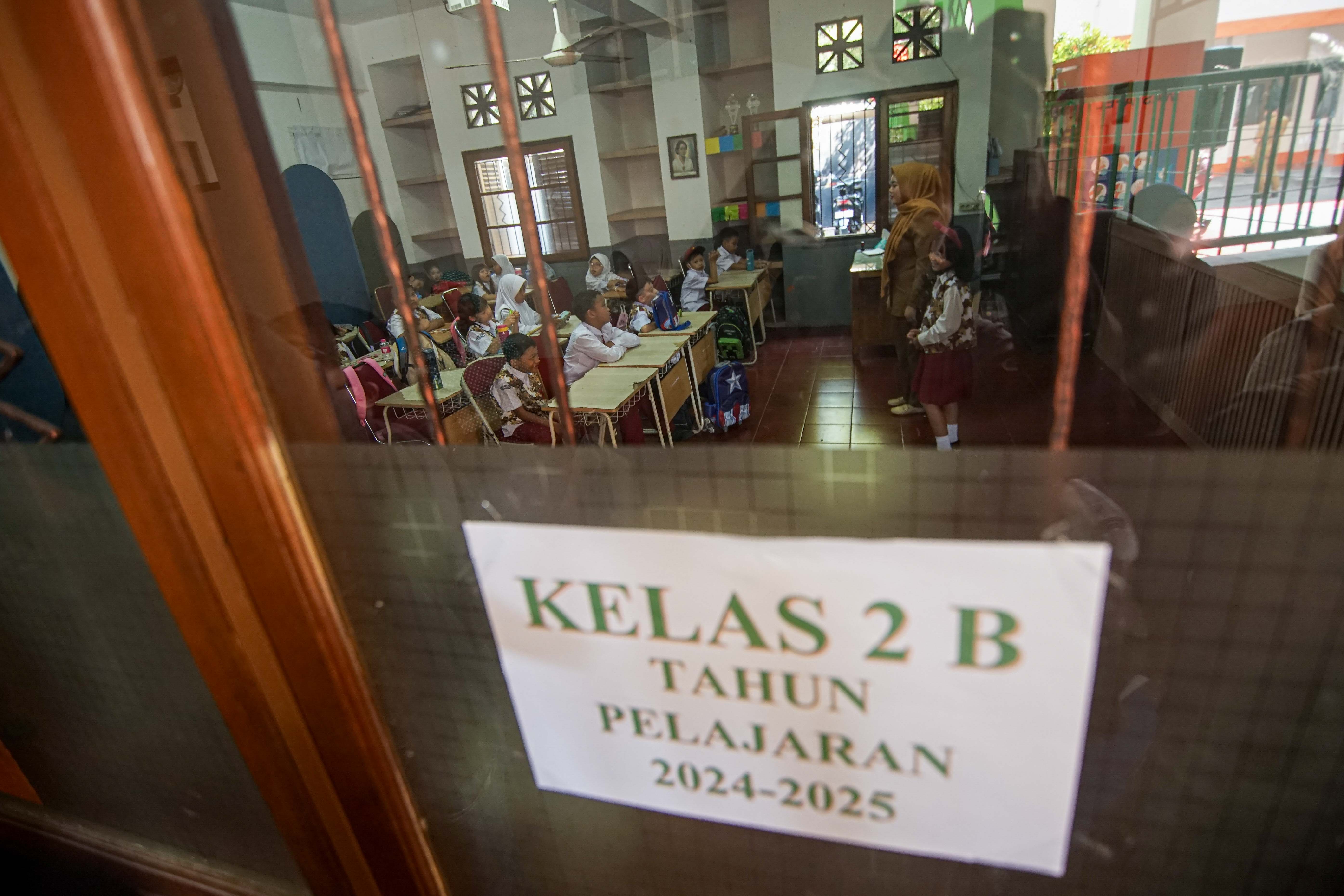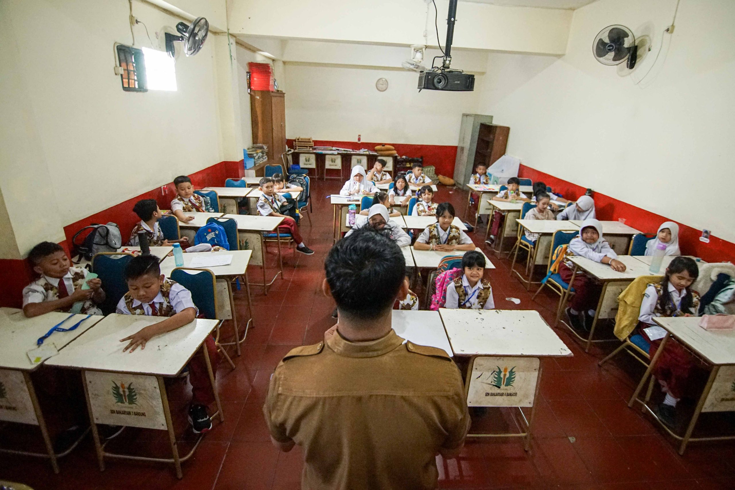 Siswa melakukan pembelajaran di SDN 113 Banjarsari, Jalan Merdeka, Kota Bandung, Senin (15/7/2024). PHOTOSSPEAK/Rasyad Yahdiyan