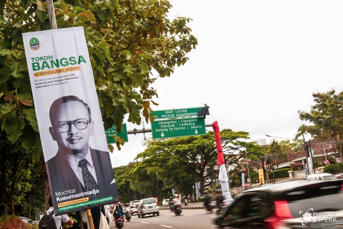 Sejumlah kendaraan melintas di bawah plang Jalan Layang Prof Mochtar Kusumaatmadja, Kota Bandung, Selasa (1/3/2022). Pemerintah Provinsi Jawa Barat mengganti nama Jalan Layang Pasupati menjadi Jalan Layang Prof Mochtar Kusumaatmadja untuk menghargai jasa besar Mochtar Kusumaatmadja dalam memperjuangkan luas wilayah Indonesia dan juga sebagai dasar persyaratan untuk diajukan sebagai pahlawan nasional. PHOTO'S SPEAK / Choirul Nurahman