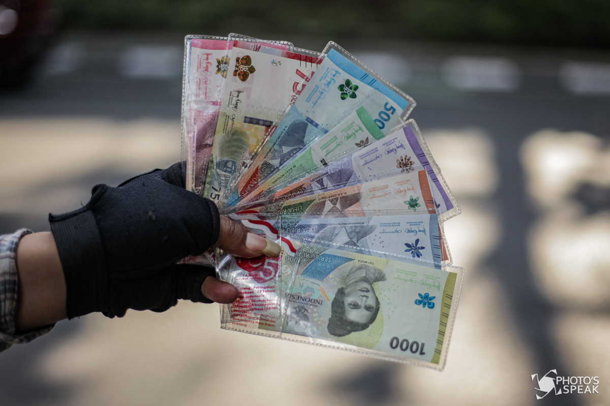 Potret uang baru yang ditawarkan menjelang lebaran di Jalan Merdeka, Kota Bandung, Selasa (2/4/2024). PHOTOSSPEAK/Ilham Ahmad Nazar