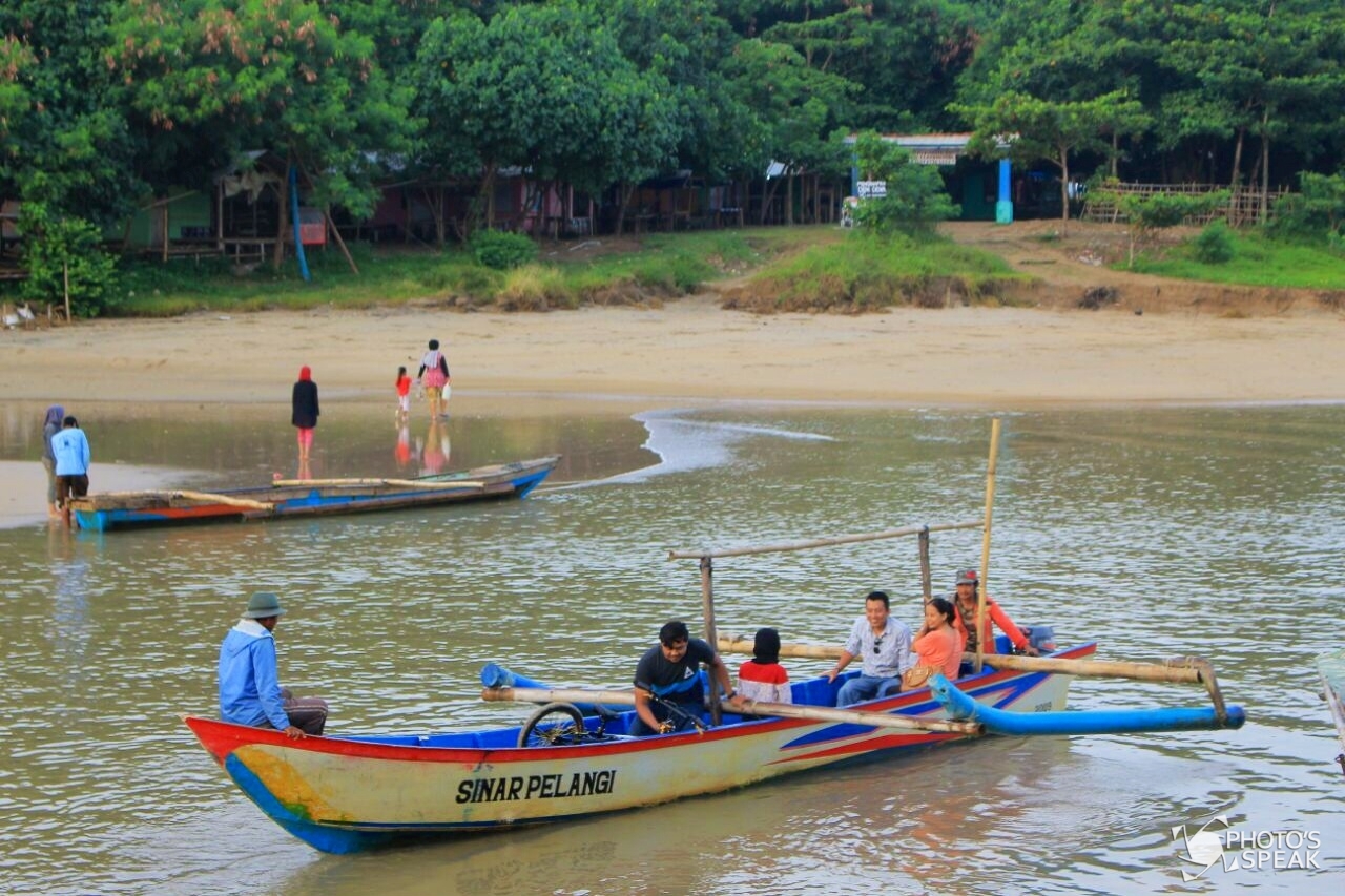 Sejumlah warga memanfaatkan perahu sebagai jasa penyebrangan bagi wisatawan di Pantai Pameungpeuk Santolo, Kecamatan Cikelet, Kabupaten Garut, Minggu (20/11/2016). Jasa transportasi yang dikelola oleh warga ini menjadi penghubung antara Pantai Santolo dan Sayang Heulang, tarif penyebrangan seharga Rp. 5.000/orang untuk sekali sebrang. PHOTO'S SPEAK/Halim Algiyas