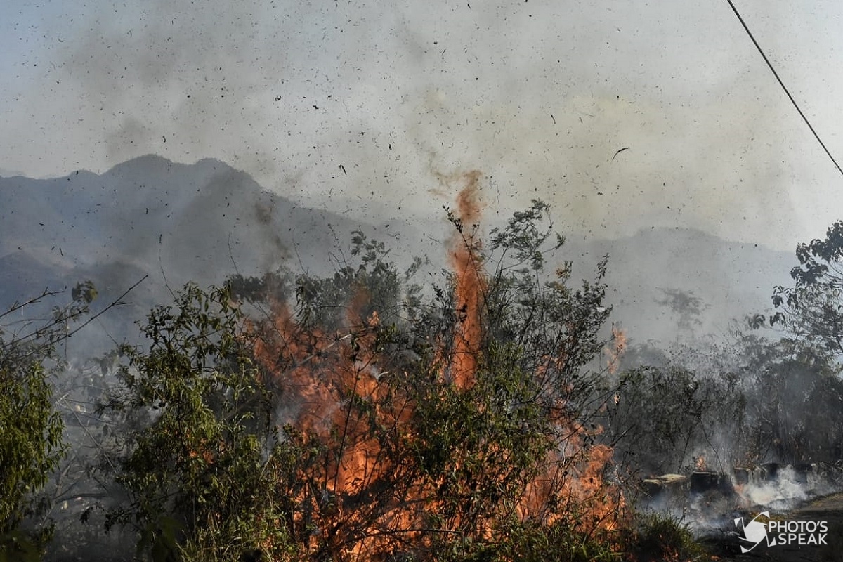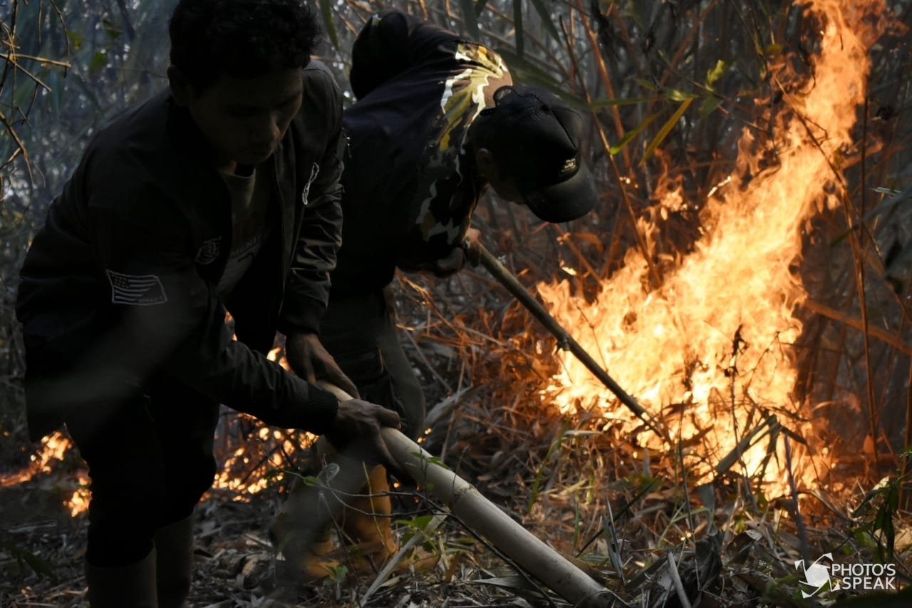 Petugas Dinas Kebakaran (Diskar) Kabupaten Bandung melakukan pendinginan lokasi kebakaran lahan di kaki Gunung Serewen, Desa Citaman, Kecamatan Nagreg, Kabupaten Bandung, Rabu (11/9/2019). Kebakaran yang disebabkan kemarau panjang ini, mengakibatkan sekitar 50 hektare lahan gambut terbakar. Petugas mengerahkan 2 mobil pemadam untuk menjinakkan api di lokasi tersebut. PHOTO'S SPEAK / Riki Baehaki