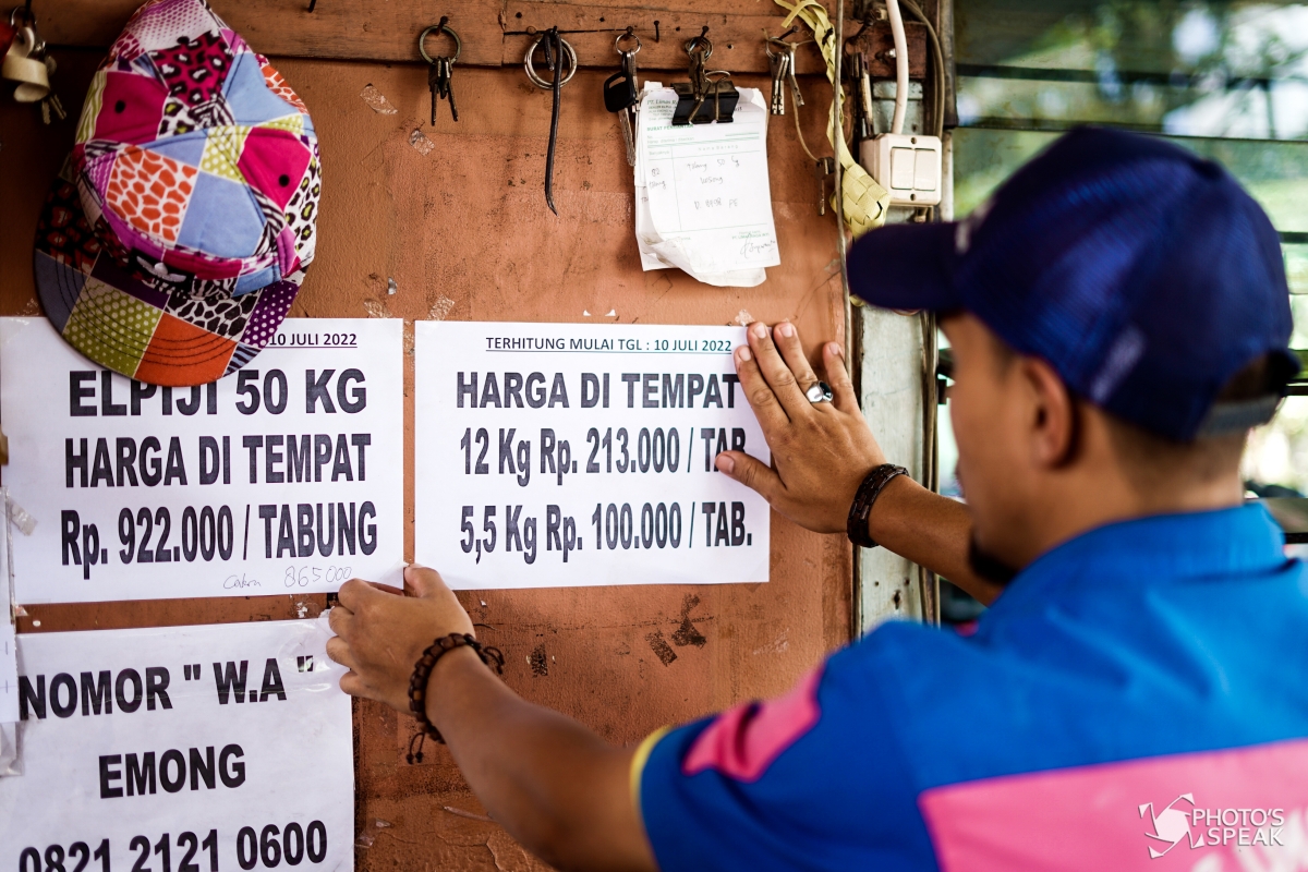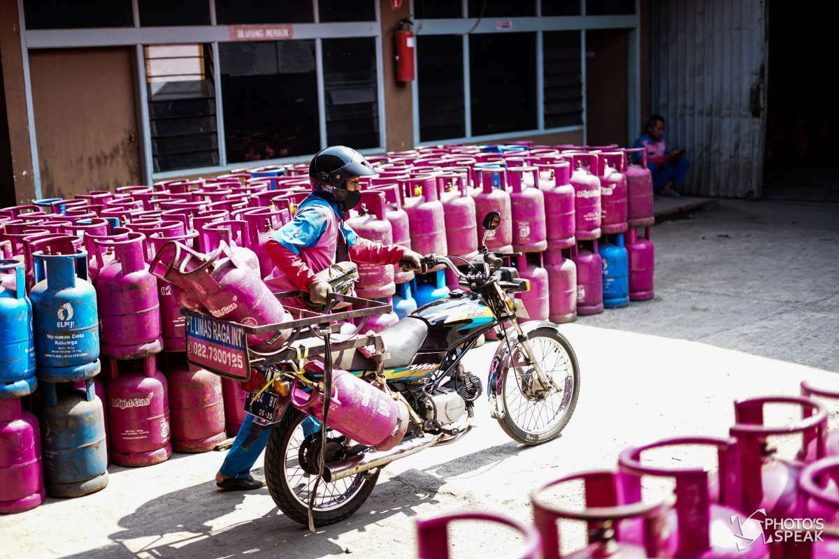 Pekerja melakukan bongkar muat gas elpiji non subsidi di salah satu agen LPG Non subsidi di Jalan Emong, Lengkong, Kota Bandung, Senin (12/07/2022). PT Pertamina (Persero) menaikkan harga elpiji non subsidi sekitar 2 ribu rupiah per kilogram yang berlaku sejak (10/07) di Kota Bandung, harga gas elpiji nonsubsidi ukuran 12 kilogram naik menjadi 231 ribu yang semula 198 ribu, sementara Bright Gas ukuran 5,5 kilogram naik menjadi 100 ribu yang semula 87 ribu. PHOTO'S SPEAK/Muhammad Farhan Waldassani