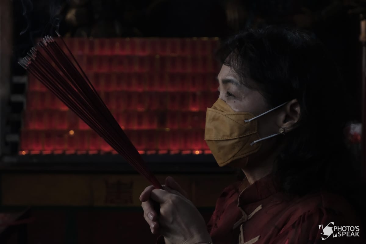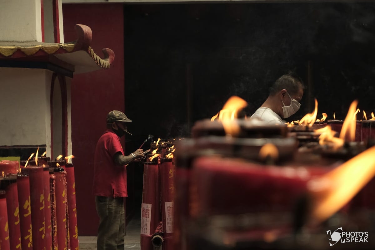Salah seorang warga bersembahyang di Vihara Dharma Ramsi, Jalan Cibadak, Kota Bandung, Jumat (12/02/2021). Tahun baru Imlek kali ini dirayakan di tengah masa pandemi Covid-19 dengan menggunakan protokol kesehatan dan pembatasan sembahyang dari jam 06.00 WIB sampai 17.00 WIB. PHOTO'SSPEAK/Fakhri Fadlurrohman