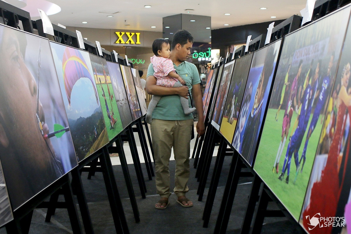 Pengunjung melihat karya foto pada pameran Kilas Balik Jabar Kahiji yang diadakan oleh Wartawan Foto Bandung (WFB) di Bandung Indah Plaza (BIP), Jalan Merdeka, Kota Bandung, Minggu (4/12/2016). Pameran Kilas Balik Jabar Kahiji ini menampilkan 100 foto terbaik dari 32 fotografer dari berbagai media massa di Jawa Barat, para fotografer menampilkan karya foto khusus yang erat berkaitan dengan torehan sejarah Jawa Barat yang berhasil menjadi juara umum di ajang Pekan Olahraga Nasional (PON) XIX dan Pekan Paralimpik Nasional (Peparnas) XV. PHOTO'S SPEAK/Fattahul Akbar