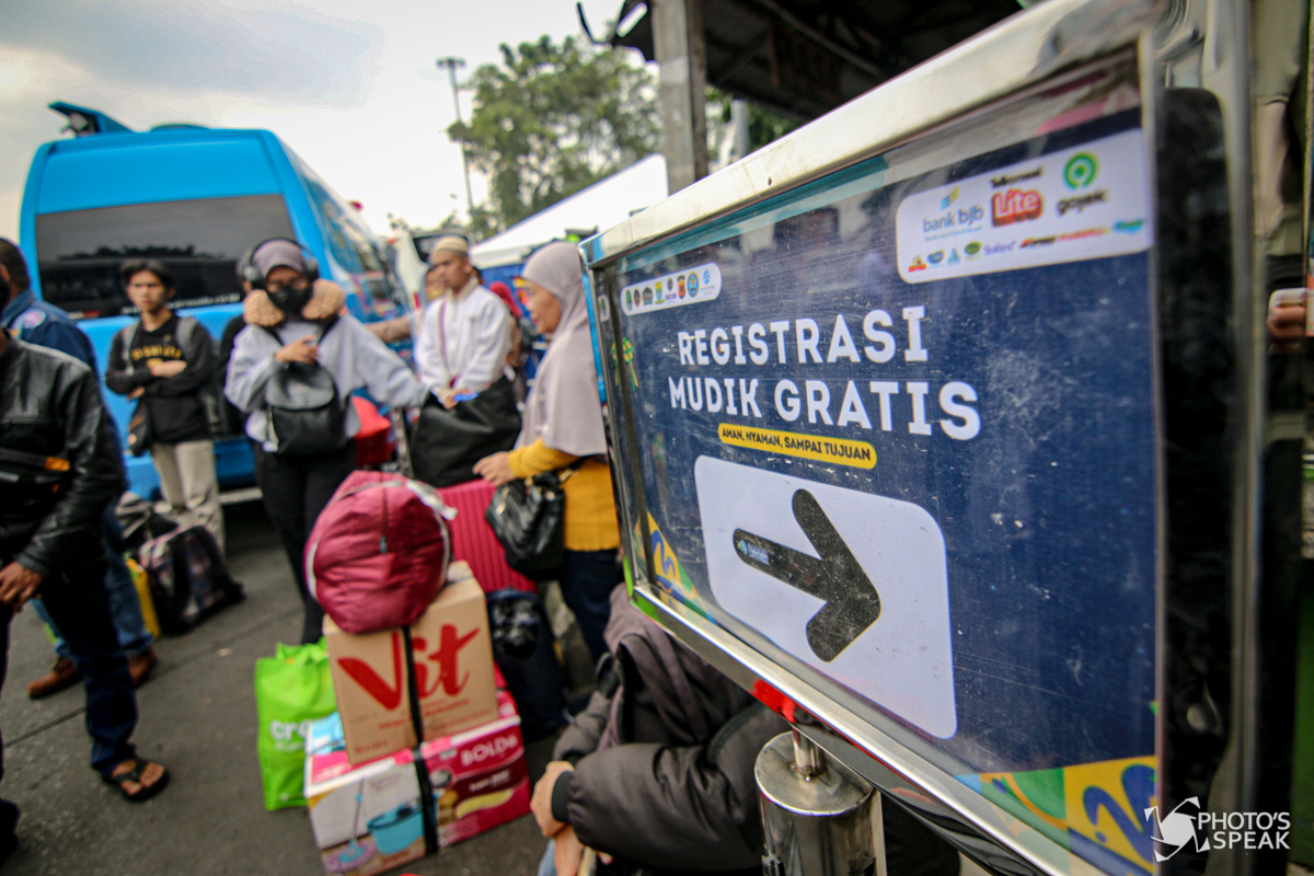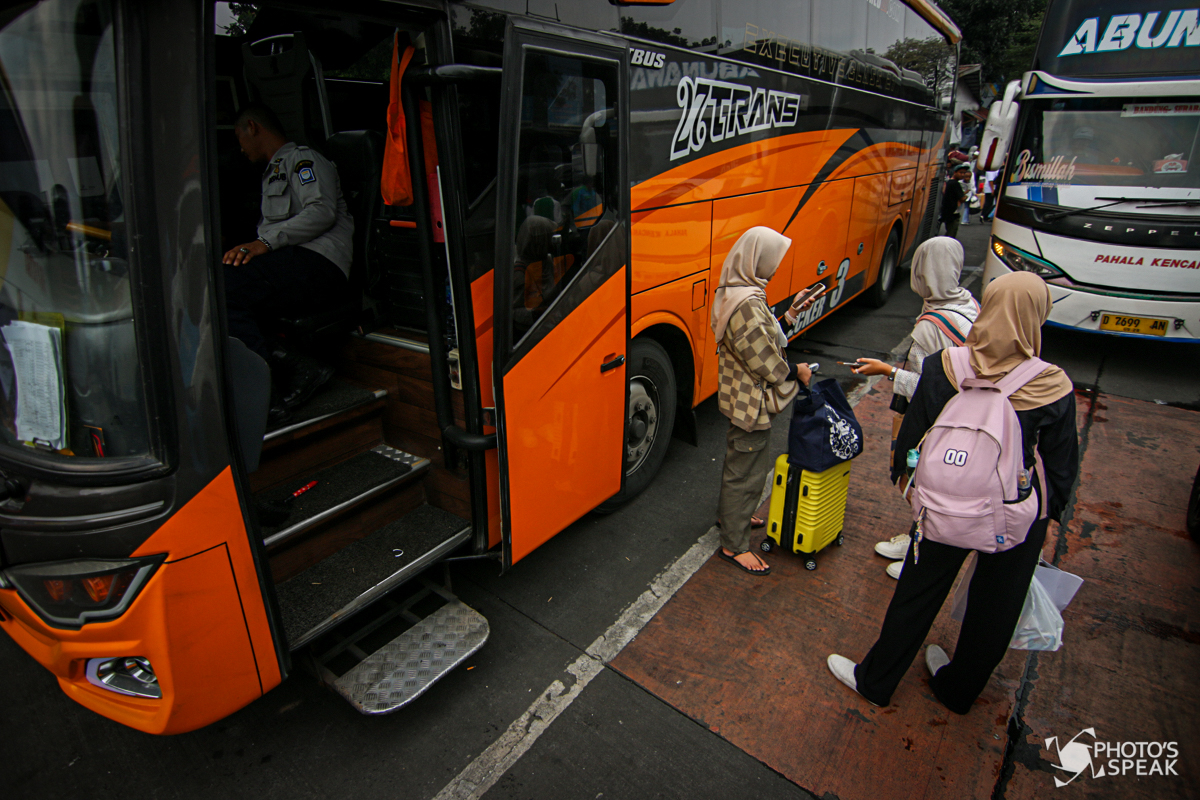Pemudik menunggu bus di Terminal Cicaheum, Kota Bandung, Sabtu (6/4/2024). Pemerintah Provinsi Jawa Barat bersama Dinas Perhubungan dan PT Jasaraharja memberangkatkan 2034 pemudik dengan 46 armada bus pada momentum lebaran 2024. Puncak arus mudik diprediksi akan berlangsung pada tanggal 6 hingga 7 April 2024. PHOTOSSPEAK/Rasyad Yahdiyan