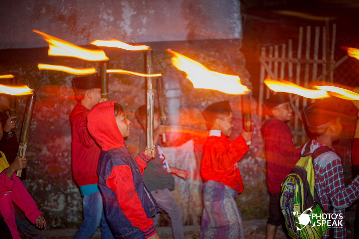 Masyarakat mengikuti pawai obor di Dusun Ciwahang, Desa Sukamanah, Kecamatan Malangbong, Kabupaten Garut, Jumat (29/7/2022). Kegiatan pawai obor tersebut kembali diselenggarakan dalam rangka menyambut tahun baru Islam 1444 Hijriyah setelah ditiadakan 2 tahun terakhir karena pandemi. PHOTO'S SPEAK / Ditya Rafi Muttaqin