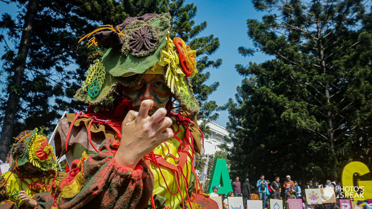 Para peserta mengenakan kostum tematik dan menampilkan tarian teatrikal saat puncak performance Tapak Meriah di Taman Cikapayang Dago, Kota Bandung, Jawa Barat, Minggu (21/9/2025). Tapak Meriah merupakan rangkaian pra-acara menuju Pasar Seni ITB yang akan digelar pada 18–19 Oktober 2025. PHOTOSSPEAK/Naufal Al Ghifari Pratama