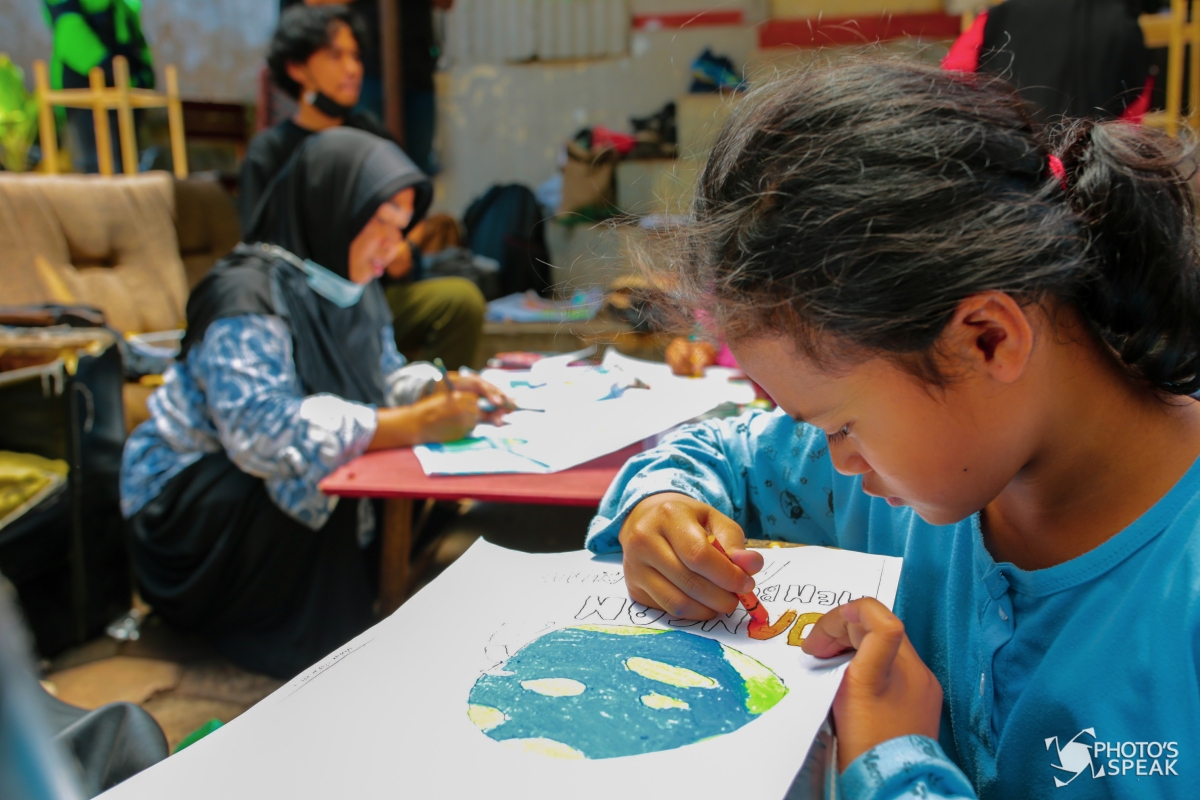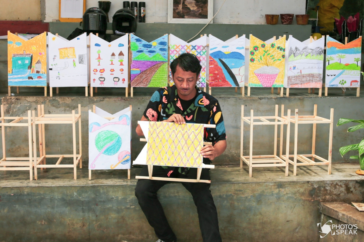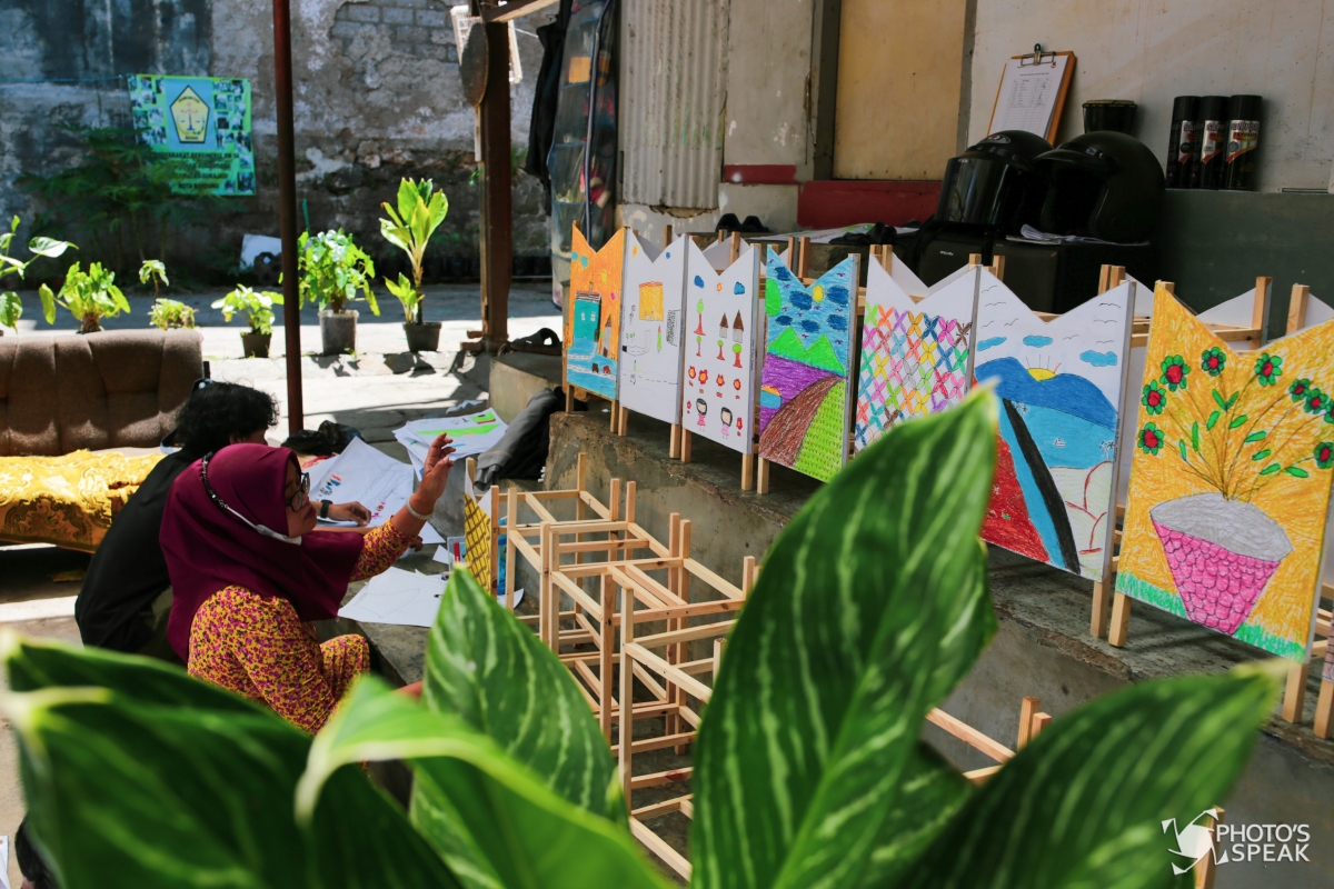 Warga Kampung Cibogo bersama Komunitas Masagi menggambar diatas kertas untuk ditempelkan ke rangka damar kurung saat pelatihan pembuatan damar kurung (lentera) di Jalan Terusan Cibogo Atas, Sukajadi, Kota Bandung, Senin (4/4/2022). Pelatihan yang diinisiasi oleh seniman Novan Effendy bersama Rakarsa Foundation tersebut bertujuan untuk melestarikan tradisi damar kurung, serta sarana aspirasi dan ekspresi warga sekaligus mengisi waktu luang sambil menunggu berbuka puasa (ngabuburit). PHOTOSSPEAK/ Choirul Nurahman
