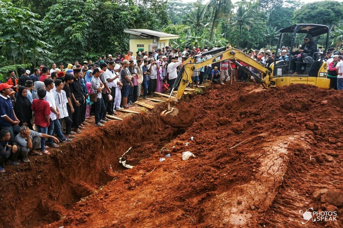 Prosesi pemakaman massal korban kecelakaan bus di Taman Makam Pahlawan Legoso, Ciputat, Tangerang Selatan, Minggu (11/2/2018). Kecelakaan bus yang terjadi di Tanjakan Emen Subang, Jawa Barat, kemarin, menewaskan 27 jiwa. PHOTO'S SPEAK / Jamal Ramadhan