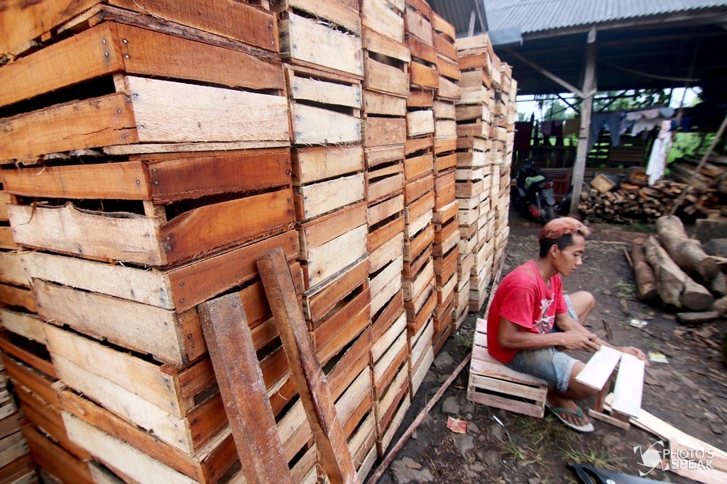 Indra (23) mengerjakan pembuatan peti telur di Jalan Cibitung, Sukabumi, Senin (21/11/2016). Dengan memanfaatkan limbah kayu yang tidak terpakai, lalu limbah kayu terseut dijadikan peti telur yang dijual seharga Rp. 3.500 satunya, pembuatan peti kayu terkendala oleh mesin pemotong kayu yang hanya menggunakan alat seadanya sehingga tidak bisa memenuhi permintaan pasar yang banyak. PHOTO'S SPEAK/Fattahul Akbar