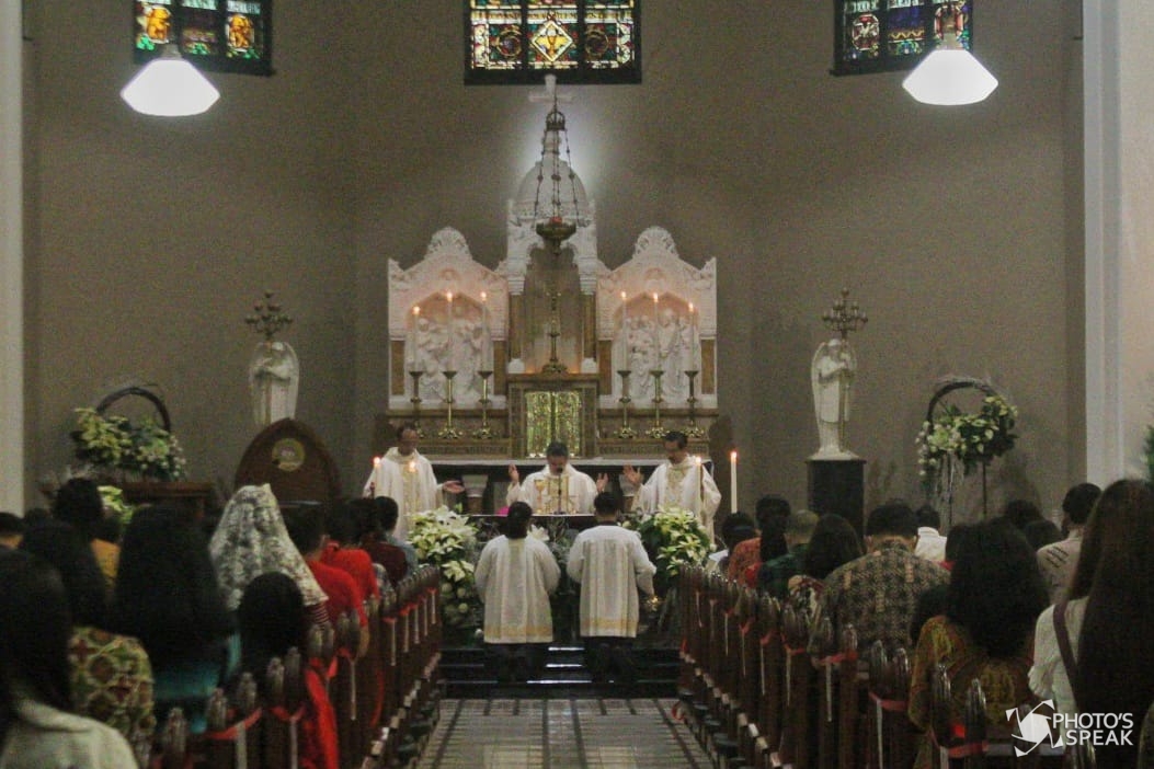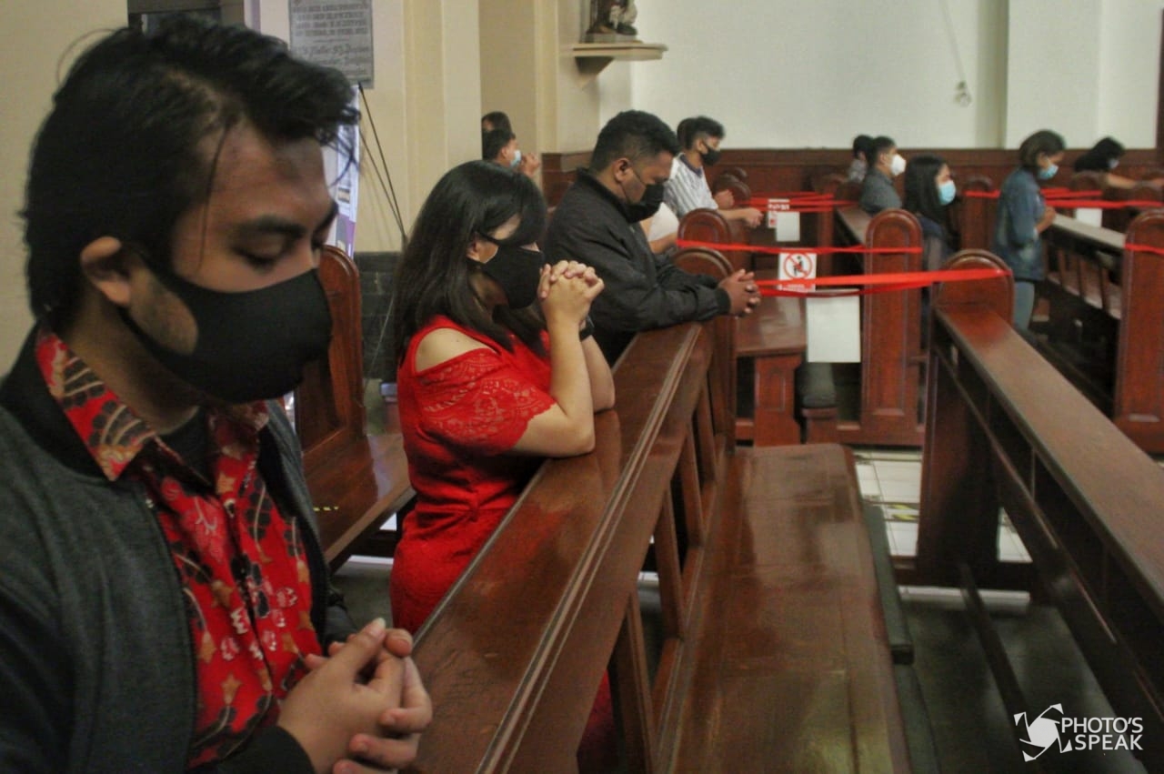 Sejumlah Jemaat melaksanakan peribadatan di Gereja Katedral St. Petrus Bandung, Jalan Merdeka, Kota Bandung, Kamis (24/12/2020). Untuk mencegah penyebaran Covid-19 gereja yang biasa menampung 1.000 orang, kini dibatasi menjadi 23 orang dan disiarkan secara virtual. PHOTO'S SPEAK/ Robby Hamzah