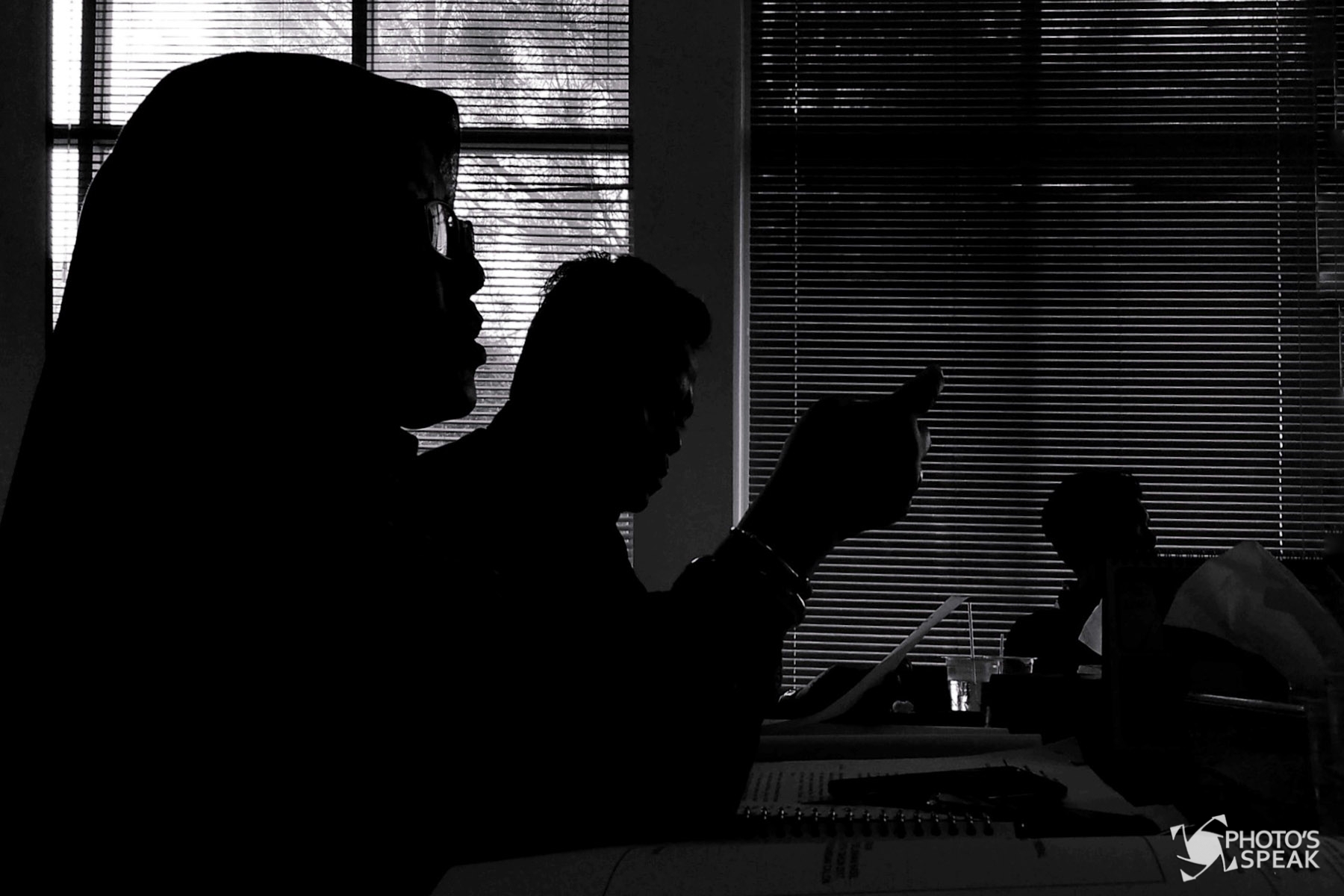 Siluet wajah komisioner Komisi Pemilihan Umum (KPU) Kota Cimahi, Sri Suasti saat rapat bersama tiga tim pemenangan Pasangan Calon (paslon) Walikota dan Wakil Walikota membahas jadwal kampanye terbuka, di kantor KPU Kota Cimahi, Jl. Pasantren, Selasa (1/11/2016). Permintaan tim pemenangan paslon yang menginginkan kampanye terbuka digelar di waktu dan tempat yang sama ditolak KPU karena pertimbangan keamanan. PHOTO'S SPEAK/Bahi Binyatillah B