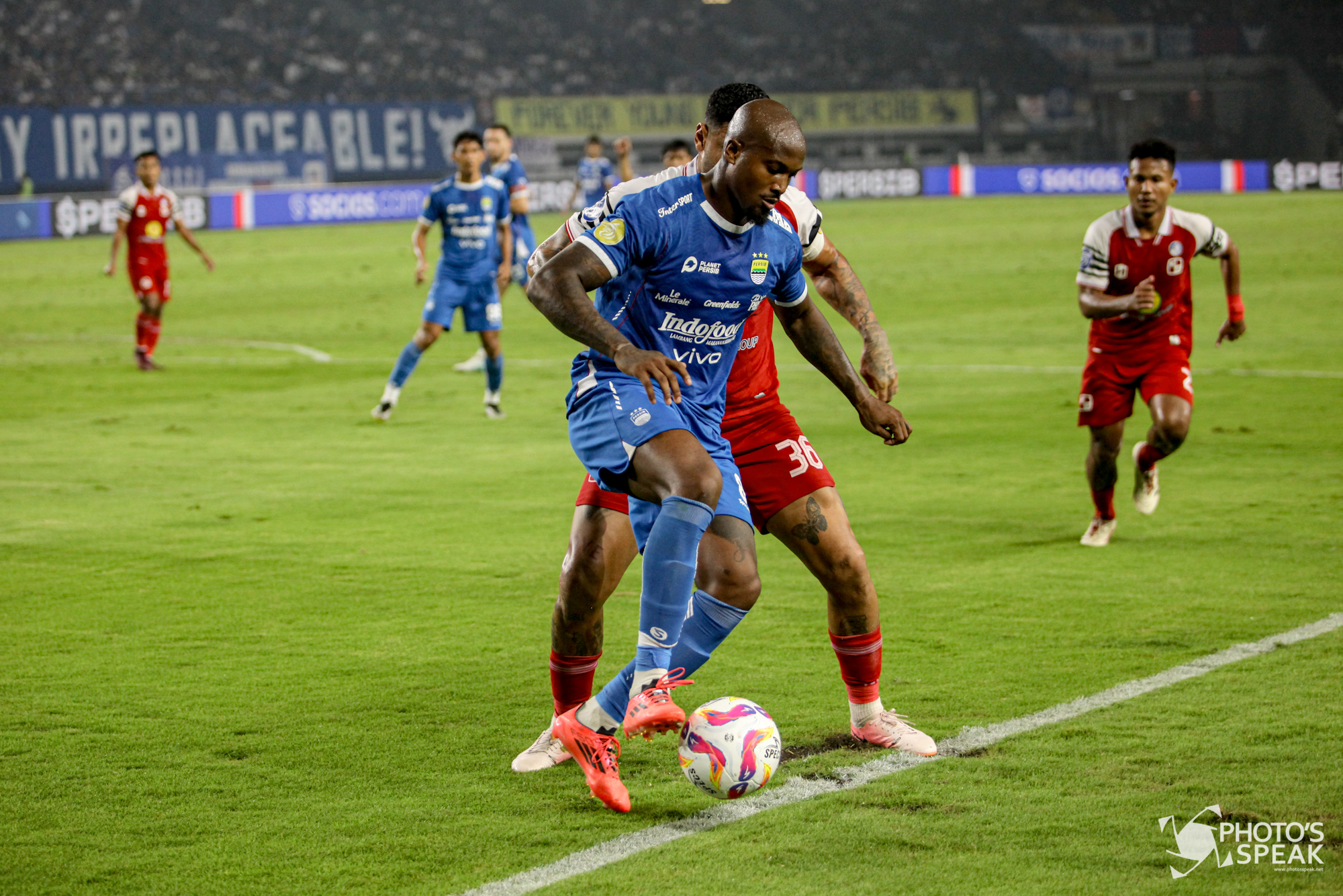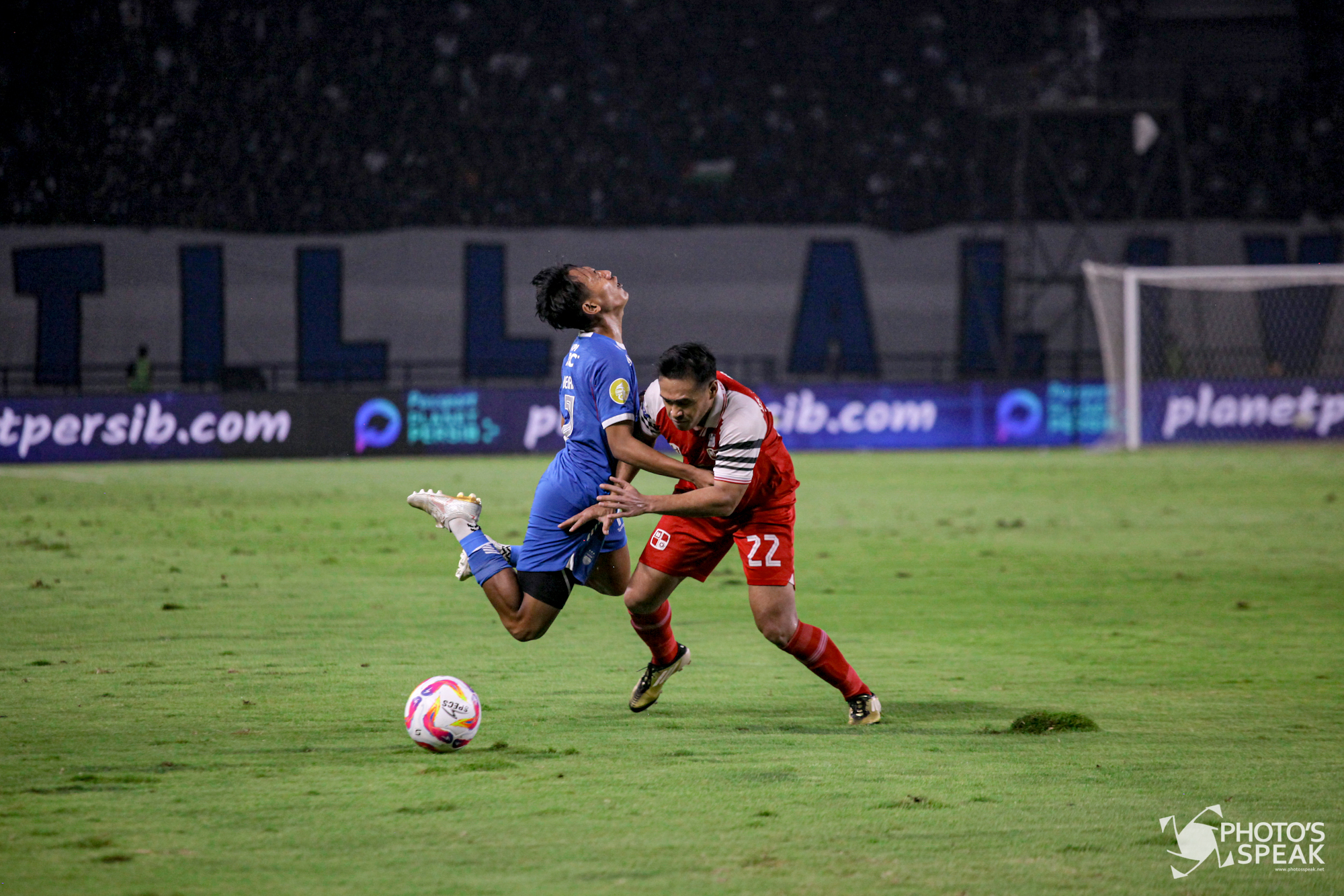 Pesepak bola Persib, Garven Kastaneer (kiri), berebut bola dengan pesepak bola Barito Putera, Renan da Silva (kanan), dalam pertandingan BRI Liga 1 di Stadion Gelora Bandung Lautan Api (GBLA), Kota Bandung, Jumat (9/5/2025). Barito Putera berhasil menahan imbang tuan rumah Persib Bandung dengan skor 1-1. PHOTOSSPEAK/Ilham Ahmad Nazar.