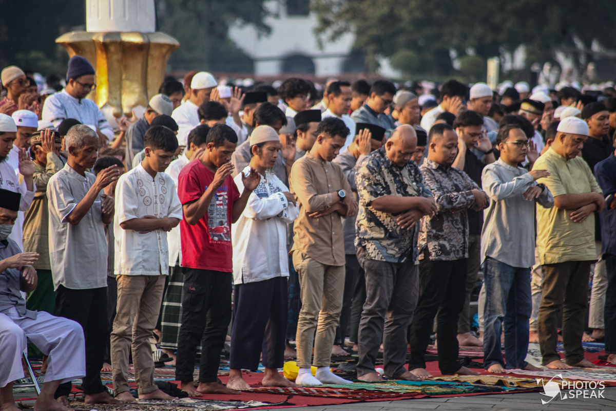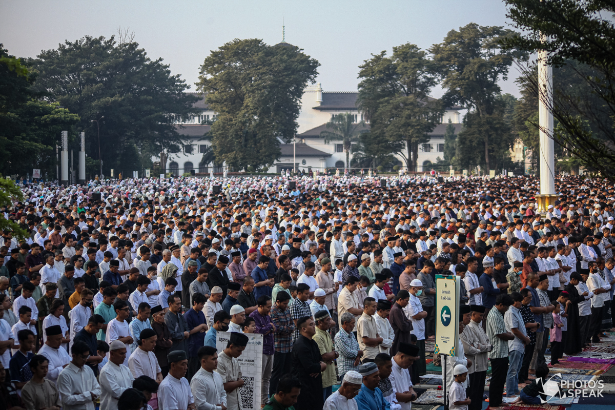 Umat muslim melaksanakan salat Idulfitri di Lapangan Gasibu, Kota Bandung, Rabu (10/4/2024). PHOTOSSPEAK/Ilham Ahmad Nazar[/caption]