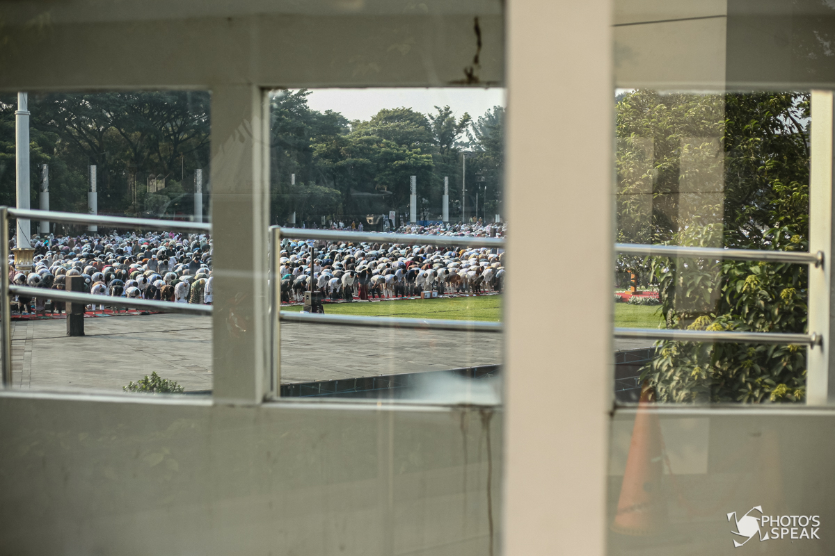 Umat muslim melaksanakan salat Idulfitri di Lapangan Gasibu, Kota Bandung, Rabu (10/4/2024). PHOTOSSPEAK/Ilham Ahmad Nazar [c