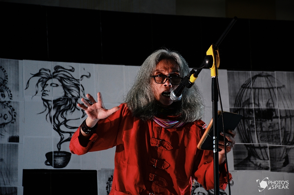 Godi Suwarna (60) membacakan puisi dalam acara Milangkala Jaringan Anak Sastra (JAS) ke-2 tahun di Aula Abjan Soelaeman, Kampus UIN Sunan Gunung Djati Bandung, Jalan A.H Nasution, Kota Bandung, Rabu (5/4/2017). Dalam dunia sastra dan seni, Godi Suwarna terkenal sebagai sastrawan multitalenta dengan karyanya yang ditulis dalam bahasa Ibu (Sunda). Salah satu penghargaan terbaiknya yaitu “Hadiah Sastra Rancage” orang yang dianggap berjasa dalam mengembangkan bahasa dan sastra daerah. PHOTO'S SPEAK / Asep Solihin