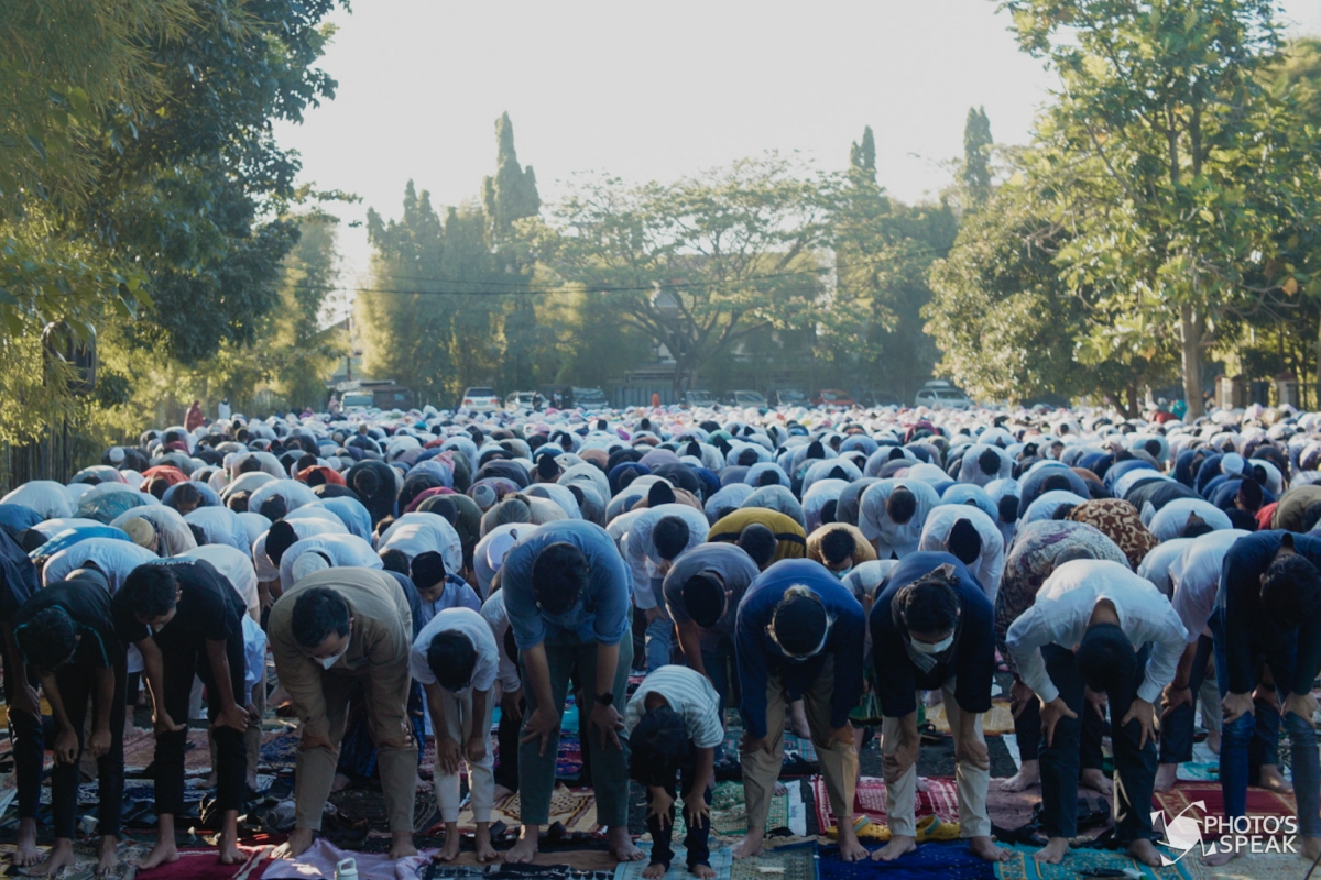 Umat Islam melaksanakan shalat Idul Adha 1443 Hijriah di Kawasan Monumen Perjuangan, Jalan Dipati Ukur, Kota Bandung, Sabtu (9/7/2022). Warga Muhammadiyah di kawasan itu melaksanakan shalat Idul Adha 1443 Hijriah pada Sabtu (9/7) yaitu sehari lebih awal dari yang ditetapkan pemerintah. Photo's Speak/Ditya Rafi Muttaqin