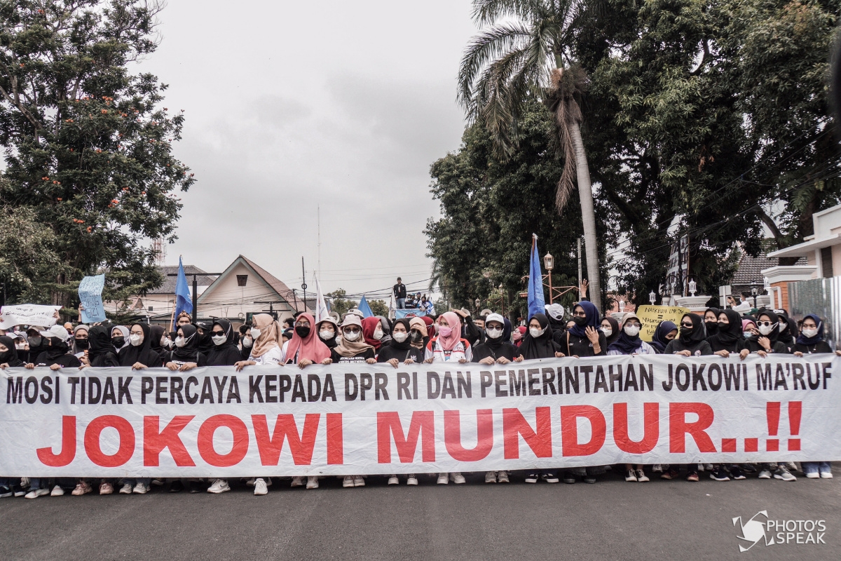 Ribuan buruh yang tergabung dalam Aliansi Buruh Majalengka (ABM) berunjuk rasa menuntut kenaikan  Upah Minimum Kabupaten (UMK) di depan kantor Bupati Majalengka, Jawa Barat, Rabu (24/11/2021). Aksi tersebut menghasilkan keputusan kenaikan UMK Majalengka sebanyak Rp.360.000, yang sebelumnya hanya Rp.36.000. PHOTO'SSPEAK / Adi Nursobah
