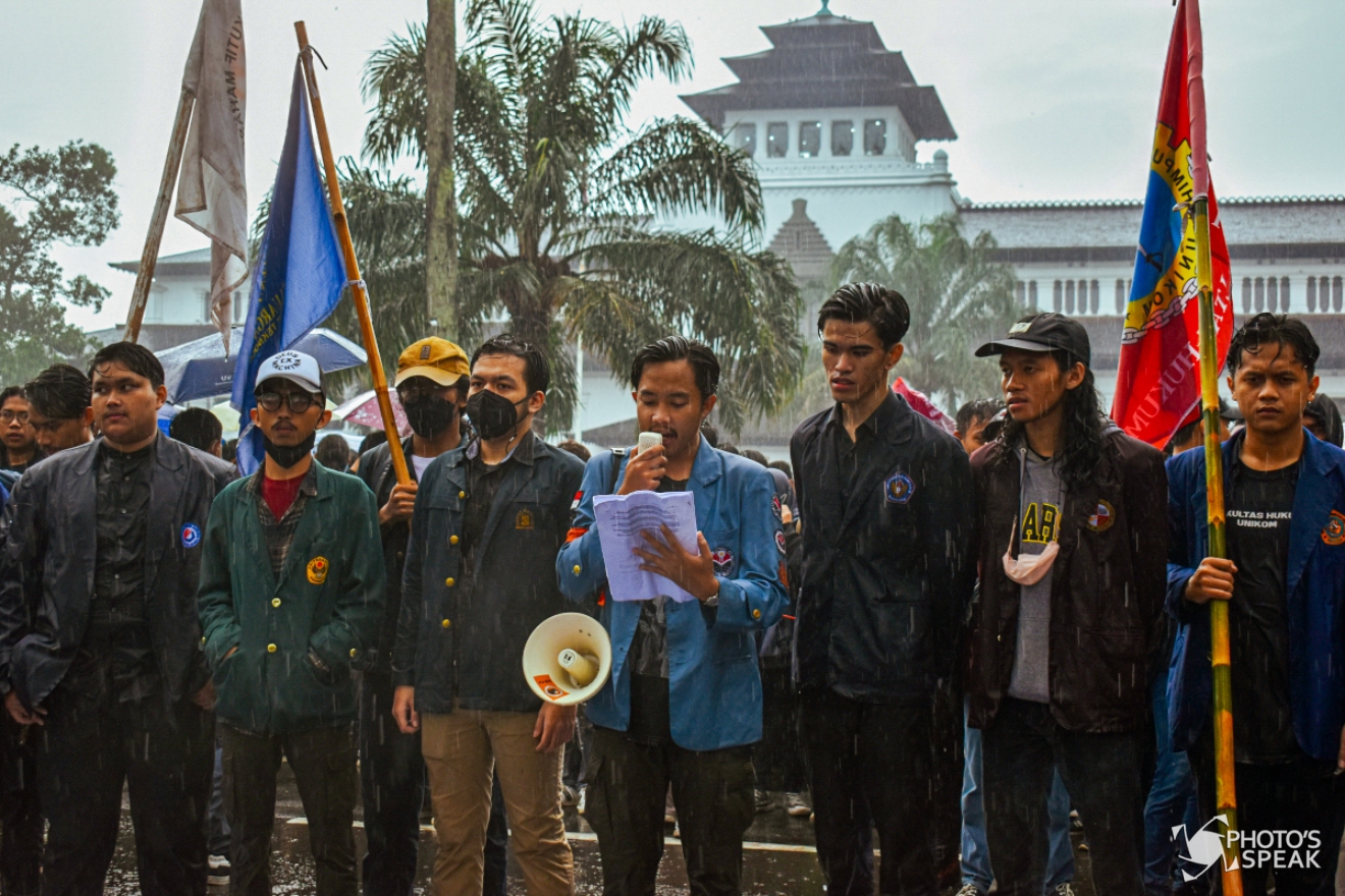Unjuk Rasa Mahasiswa di Bandung Diwarnai Hujan Deras